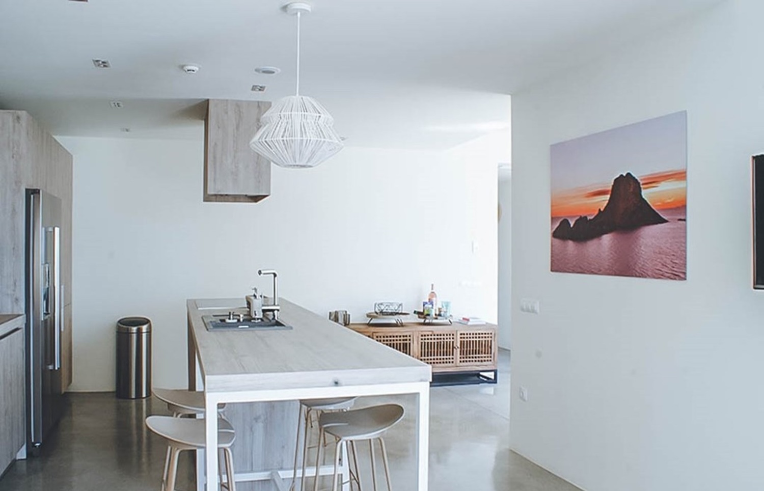 Dieses bezaubernde Anwesen mit 4 Schlafzimmern besticht durch eine faszinierende Mischung aus traditioneller ibizenkischer Architektur und zeitgenössischer Eleganz. Draußen harmonieren weiße Wände mit kontrastierenden Steinwänden, während im Inneren minimalistische Innenräume moderne Eleganz ausstrahlen. Der offene Loungebereich lädt zum Entspannen ein, ergänzt durch eine voll ausgestattete Küche im Strandstil, perfekt für kulinarische Abenteuer.