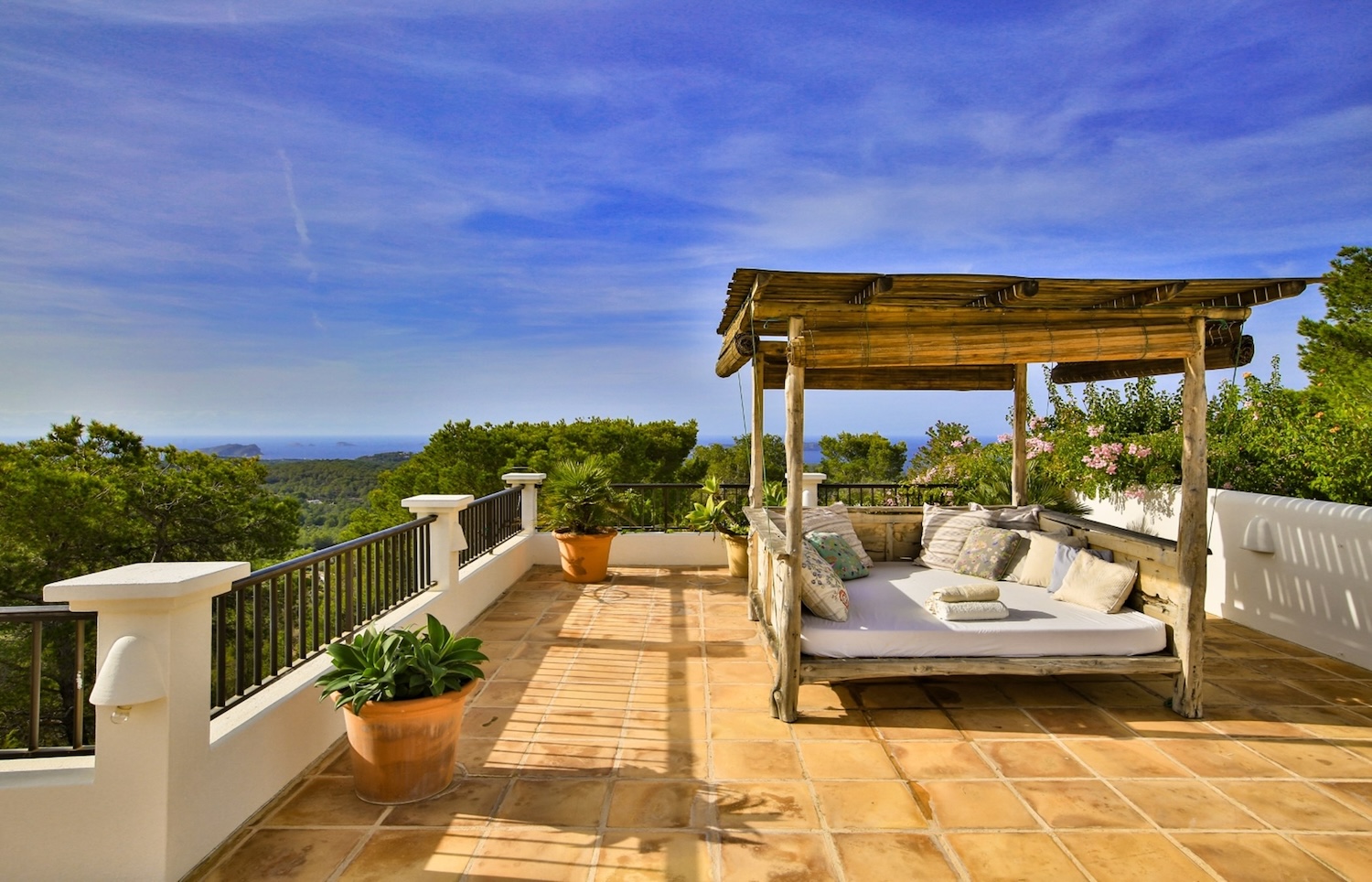Die Villa Es Raco beeindruckt mit einer atemberaubenden Aussicht und Sonnenuntergang. Auf einem Hügel gelegen, umgeben von Pinien und einem mediterranen Garten, bietet diese Villa den perfekten Rückzugsort für Familienausflüge. Mit einer der besten Aussichten auf Ibiza mit Blick auf die westlichen Strände und Inseln, wo jeder Sonnenuntergang unvergesslich wird.