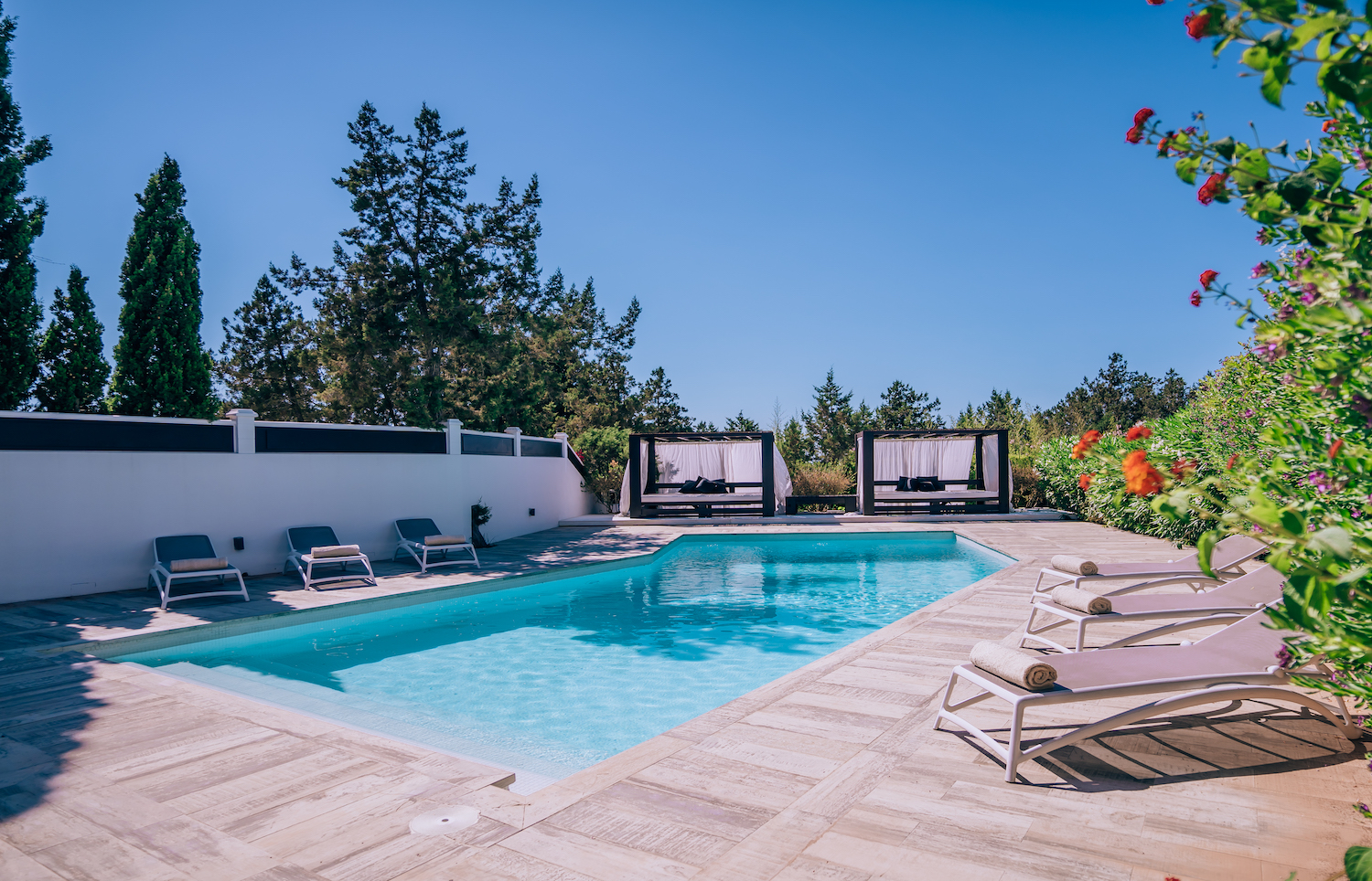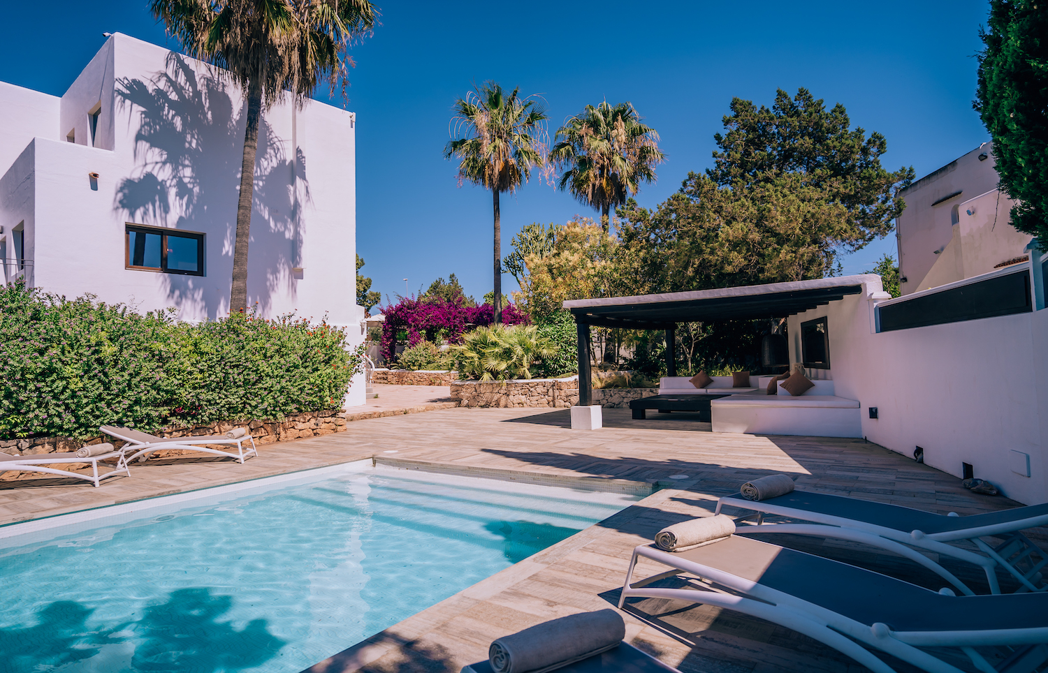 Lovely villa located close to San Antonio and around 15 minutes distance from Ibiza town. There is a large garden with lemon and orange trees, terrace areas with outdoor kitchen and BBQ in the pool area.