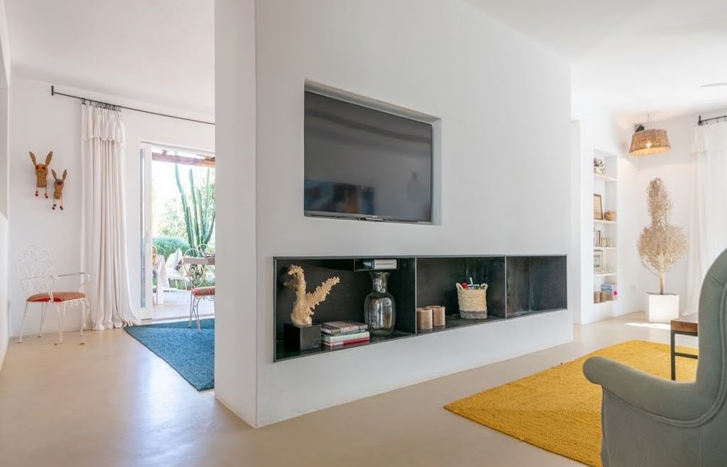 Can Brooke ist eine neu renovierte Villa mit 5 Schlafzimmern, die sich in einer friedlichen und ruhigen Umgebung zwischen dem malerischen Dorf San Carlos und der lebhaften Stadt Santa Eulalia befindet und ganz in der Nähe des berühmten Hippiemarktes Las Dalias liegt. Das Anwesen liegt nur wenige Gehminuten von den wunderschönen Stränden Cala Llenya und Cala Nova entfernt, wo sich die angesagten Beachclubs Aiyanna und Atzaro Beach befinden.