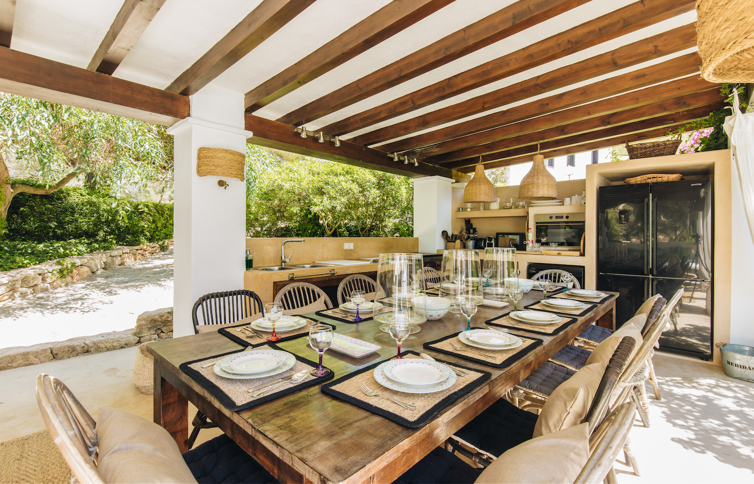 Villa Charo is a stunning countryside villa situated in the heart of the island on a 4-hectare plot providing loads of privacy and peace. This six-bedroom property is made to suit the Mediterranean climate with many sun-drenched or shaded chill-out areas, a fully fitted outdoor kitchen, a lounge corner, and, situated a few more meters away- a sunset view chillout area, perfect for an evening cocktail while enjoying a spectacular sunset ceremony. Inside, the tasteful decor features natural materials like wood and stone and blends with the highest quality furnishings and fittings.